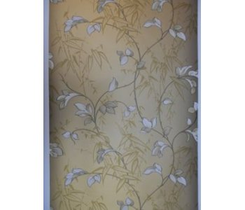 Featuring a delicate leaf design in soothing shades of grey and tones of gold, set against a luminous gold background, this wallpaper invokes a sense of tranquility and elegance. The intricate pattern includes bamboo leaves and shoots in a darker grey, adding depth and sophistication to any room.