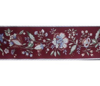 The 4622 Pride Floral Design Wallpaper Border is a beautiful addition to any home decor, featuring a floral pattern in soft pink, claret, blue, lilac, green, white, and beige colours.