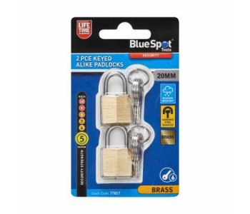The Blue Spot Tools 2 PCE 20mm brass padlocks are manufactured from solid brass with brass cylinders for increased durability and weather resistance. Fitted with hardened steel shackles for added strength. Each lock includes 3 keys, which are keyed alike.