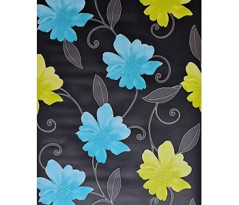 Transform your space with the vibrant and stylish E59701 Direct Black Lime and Turquoise Flowers with Dark Grey Leaves Wallpaper. This premium wallpaper features a striking floral design in bold shades of lime and turquoise shades on a sleek black background.