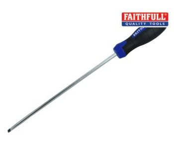 Faithfull Parallel Slotted Tip Screwdrivers with a high quality, correctly hardened and tempered chrome vanadium steel blade. Its black phosphate tip provides a long working life and is magnetised for screw retention. Fitted with a bi-material soft grip handle for maximim user comfort. Every handle has a drive icon displayed on the end for easy identification.