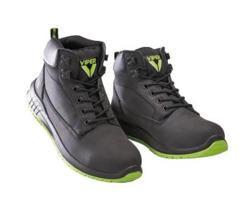 The Scan Viper SBP Safety Boots have a full grain leather upper, 200-joule steel toecap and penetration resistant steel midsole.