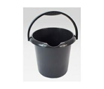 5 Litre round plastic bucket, integral pouring spout, contoured handle for firm, comfortable grip, additional base grip to make handling/pouring easier, graduated capacity markers on the inside, strong and durable.