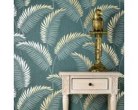 FD43767 FINE DECOR FERN BLUE BLOWN VINYL WALLPAPER