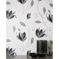 M1719 SYNERGY FLORAL BLACK BLOWN VINYL WALLPAPER