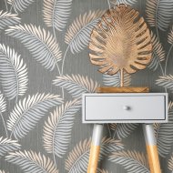 FD42839 CASCADE LEAVES GREY & GOLD BLOWN PAPER