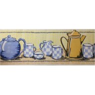 487b PRIMROSE TEA POT CUPS AND JUG DESIGN WALLPAPER BORDER
