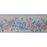 85491 CROWN PINK AND BLUE FLORAL DESIGN VINYL BORDER