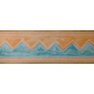 39857 MAYFAIR TURQUOISE AND ORANGE ZIG-ZAG DESIGN BORDER