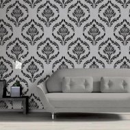 9032 CRYSTAL DAMASK SILVER AND BLACK VINYL WALLPAPER