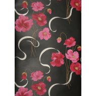 111424 MURIVA PAPAVER BLACK WITH PINK FLOWERS WALLPAPER