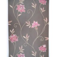 V.335-09-P053 BROWN BACKGROUND WITH PINK FLOWER WALLPAPER