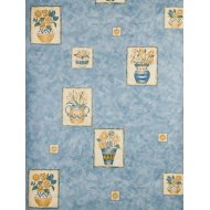 410102 BLUE WITH FLOWER POT WALLPAPER
