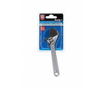 The BlueSpot 15" Adjustable Wrench is manufactured from heat-treated carbon steel for strength and durability. An extra-long handle helps tackle especially tough jobs where more torque is required. The jaw design allows a better fit, and the knurled wheel make adjustments easy.