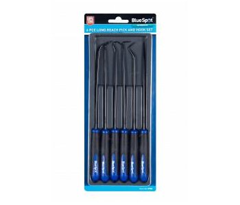 The BlueSpot 6 PCE Long Reach Pick and Hook Set is manufactured from carbon steel. The set is ideal for the removal of o-rings, seals and other items from difficult to access areas. The set comes complete with soft grip handles for user comfort.