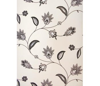 This high-quality wallpaper by Holden Decor features an elegant paisley flower design in a black and silver colour palette, set against a crisp white background.