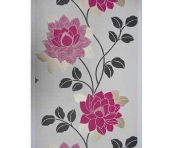 Introducing the striking 10504 Coco Pink & Charcoal Wallpaper, a versatile and elegant choice for adding a touch of sophistication to any room. This wallpaper features a creamy backdrop adorned with delicate pink flowers, intricate charcoal leaves, and shimmering gold stems, creating a harmonious and eye-catching design.