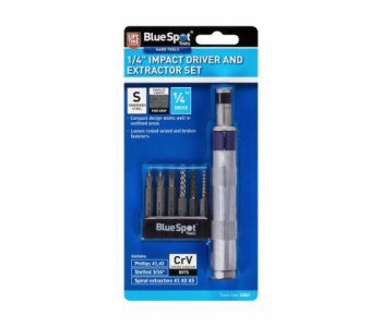 The Blue Spot Tools 1/4" Impact Driver and Extractor Set is manufactured from hardened steel for increased strength and durability . The impact driver has a knurled handle to maintain grip during use and comes complete with 6 chrome vanadium 50mm power bits. Compact design works well in confined areas, with a few strikes of a hammer you will be able to loosen rusted and seized fasteners and broken screws.