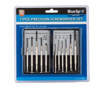 The BlueSpot 11 Piece Precision Screwdriver Set is ideal for jewellers, watchmakers, electronic repairs and modelling. Includes popular Phillips and slotted screwdrivers, awl and magnet. Includes handy carrying case for quick and convenient storage.