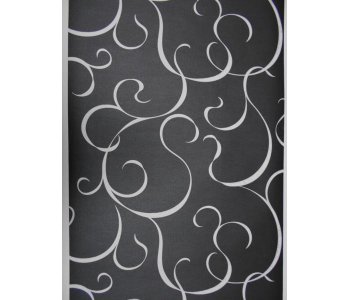 This wallpaper features a stunning black background with an intricate white swirled effect, adding a touch of sophistication to any room.