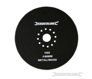 Multi-Tool Circular Cutting Blade. HSS 80mm circular blade with universal connection for cutting softwood, timber sheet and plasterboard, and for rough cutting of copper, plastic and polybutylene pipe. Compatible with all Silverline, GMC and Triton multi-cutters, and with Bosch, Fein, Worx and Dremel multi-cutters using Silverline Multi-Cutter Adaptor 646651.