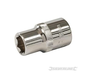 6-point hex socket for maximum torque transfer to the face of the fastener. Precision cold-forged, hardened and tempered chrome vanadium steel. Fully polished and nickel chrome-plated for durable corrosion resistance. Chamfered ends and thin walls for positive location on fastener. Knurled ring provides grip and control in the hand, and bearing hole provides solid connection to the tool.