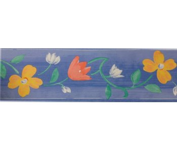Made from high-quality paper, this border features a beautiful floral pattern in shades of yellow, red, green, and white with a two tone blue background.
