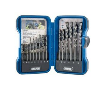 15 Piece Draper Masonry Drill Bit Set.Features:Tungsten steel straight shank drills.Display packed in soft grip plastic case.Contents: 3.0 x 3, 4.0 x 3, 5.0 x 3, 6.0 x 2, 8.0 x 2 and 10 x 2 mm.