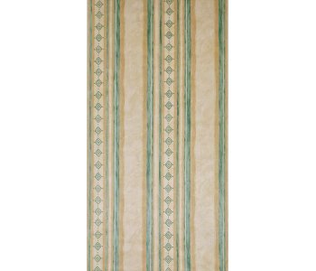 Green motif within vertical striped effect on a beige background.