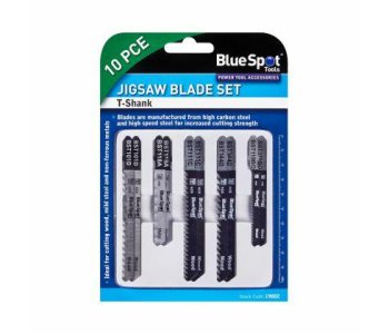 The Blue Spot Tools 10 PCE Jigsaw Blade Set (T-Shank) are manufactured from high alloy steel and cobalt steel for increased cutting strength. 118A is ideal for cutting for sheet metal (1-3mm thickness) and the other blades are suitable for cutting wood. T-Shank Fitting. Suitable for use with most popular jigsaws that require a T-Shank including: Bosch, Dewalt, Makita, Metabo, Milwaukee, Festool and more.