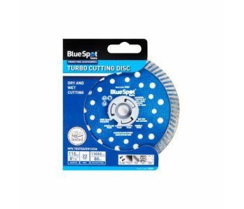 The Blue Spot Tools 115mm (4 1/2") Turbo Cutting Disc is specially designed to provide fast and accurate dry and wet cutting. Ideal for cutting through general masonry, concrete, engineering bricks porcelain, ceramics, granite, and marble. High resistance to breakage and long-lasting durability. The turbo design of the blade offers long cutting life and stable cutting performance due to its ability to cool the disc more efficiently.