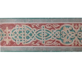 The product is by Mayfair Aqua Rust Pale Beige Celtic Design Border Wallpaper.