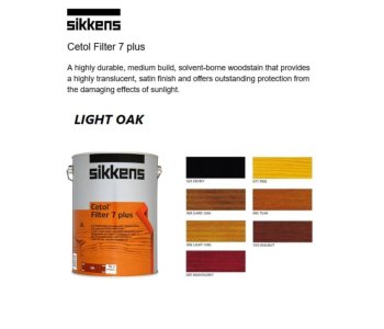 Cetol Filter 7 is an exterior woodstain for windows and doors, either as a one-coat maintenance application for existing woodstain systems or two coats over a base stain of Cetol HLS on new or bare timbers. Its advanced UV light absorbers provide superior protection from the damaging effects of sunlight on timber.