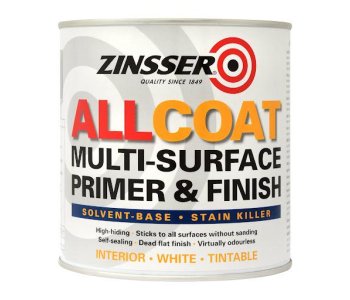 Zinsser AllCoat Solvent Based Stain Killer is a 4 in 1 solvent based interior refurbishment paint that seals, primes, block stains and finishes. Ideally suited to commercial interior applications and offers exceptional spray-ability. It can be applied over glossy surfaces, enamel paint, upvc, ceramic tile and metals. It will block fire and smoke damage and nicotine stains. Extremely quick drying times and very low odour, ideal for warehouses, factories and supermarkets. Always follow the manufacturer's instructions found on the tin. Shake or stir well before application. Apply using a synthetic bristle brush, roller or sprayer (for airless spraying, use a .017" tip and 2500 PSI pressure). Ready to use no dillution necessary. In most cases only one coat is required however porous surfaces may require two coats. Prime entire surface for best results.