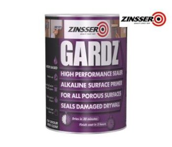 Zinsser Gardz© Sealer Primer is a clear, water-based, acrylic resin sealer that penetrates deeply into porous surfaces. It dries fast, and forms a hard, moisture-proof film that prevents drywall blistering and bubbling. It binds down chalky surfaces, strengthens soft texture finishes, and seals in residual wallpaper paste.