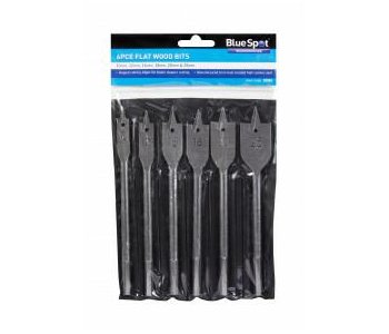 The BlueSpot 6 Piece Flat Wood Bit Set is specially designed for cutting straight or angled holes in hardwood, softwood, grain, cross-grain and laminated panels. Includes popular sizes of flat wood drill bits.