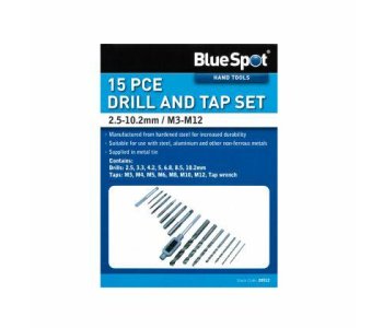 BLUE SPOT TOOLS 15 PCE DRILL AND TAP SET (M3-M12) (2.5-10.2MM)