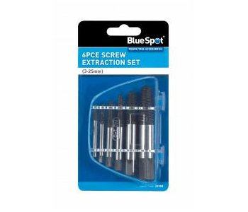 The BlueSpot 6 PCE Screw Extraction Set is manufactured from carbon steel. The set is for the removal of screws/bolts when the head has become damaged. The product features a reverse thread. Insert into pre-drilled hole within screw and operate drill in reverse to remove the screw without damage to the hole. The square end also allows use with a tap wrench.