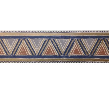 Crown Vinyl Wallpaper Border.With a blue and brown triangle design with gold and blue trims. Pattern repeat 26.5cm.5 meters in length.5.4cm in height.
