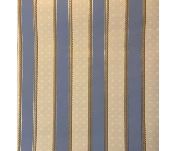 This stunning wallpaper features a sophisticated rope effect design with gold lines, complemented by alternating blue and cream striped patterns.