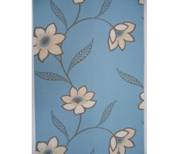 The soothing duck egg blue background sets the stage for two-tone beige flowers with cream accents and brown outlines, creating a delicate and elegant look.