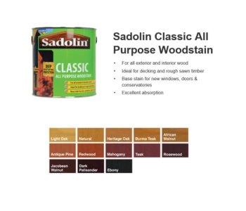 Sadolin Classic Wood Protection absorbs deeply into the timber to provide exceptional protection against the weather. Effective on large areas of timber such as cladding, fascias, decking and rough sawn timber. It is also ideal as a base stain on new joinery which is to be subsequently treated with Sadolin Extra.