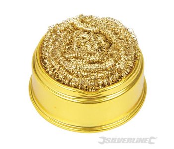 Brass wool cleans soldering iron tips without the need for water, retaining the tip temperature.