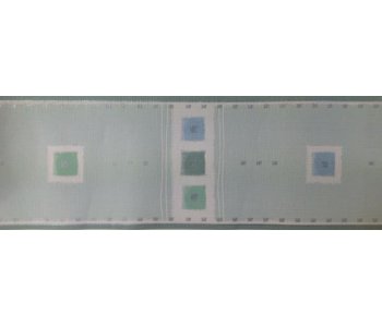 Holden wallpaper with a modern squared design in blues, green and silver. Pattern repeat 53cm. 13cm in height.5 meters in length.