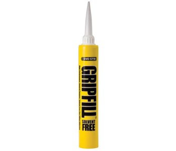 350ml Gripfill Yellow Solvent Free.EVO-STIK Gripfill Solvent Free is a high strength, gap filling adhesive. Can be used on a wide range of building materials; one surface must be porous.Suitable for interior use.