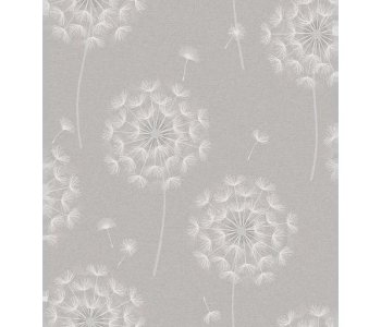 Introducing the sophisticated and luxurious 36001 Allora Grey Pattern Vinyl Wallpaper. This stunning Italian heavyweight vinyl wallpaper is the epitome of elegance, drawing inspiration from opulent floral fabrics with intricate embellishments. The design showcases a graceful and stylized dandelion motif, complete with a shimmering bead-effect stem and center, creating a truly captivating visual appeal.