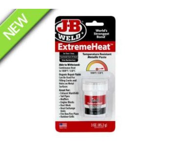 J-B Weld ExtremeHeatT Putty is formulated to allow for repairs to iron, steel and metal in high temperature environments (1000øF / 538øC). When fully cured, this metallic compound can be drilled, machined or sanded.