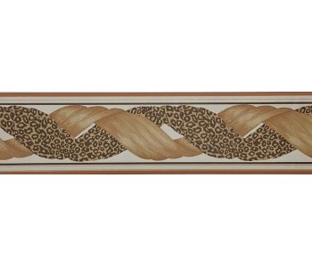 Primary Elements: The design consists of an interwoven braid made up of two different patterns. One pattern is a smooth, woodgrain texture in a light brown colour, while the other pattern resembles a leopard print in dark brown and tan.