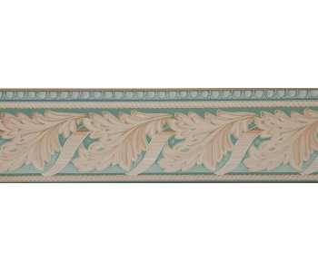 A lovely Mayfair design vinyl border with beige leaves and swisted rope effect each side, has a green background also a design running across the bottom of the border.