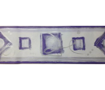 Debona Wallpaper Border. This modern border is in a purple and silver square and squiggle design with a light purple background. Pattern repeat 53cm. 5 meters in length, 17.5cm in height.
